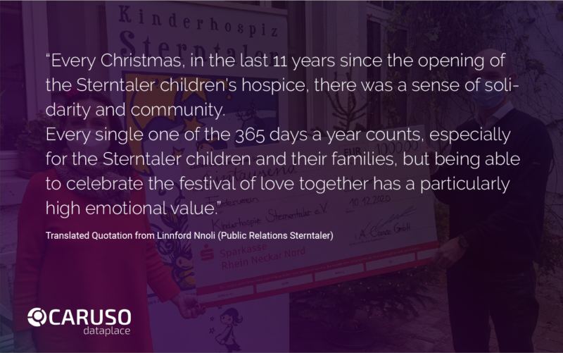 This year, the entire CARUSO family decided to donate to a great organization that helps people in need instead of having a virtual Christmas party. In the end, the decision was to support the children’s hospice Sterntaler e.V. in Mannheim, Germany.